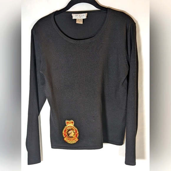 Silk Club Collection Black Long Sleeve Silk Nylon Blend Pull On Shirt Size Small With Squadron Escadrille Crest