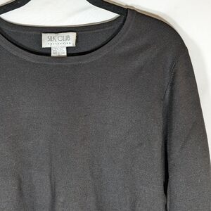 Silk Club Collection Black Long Sleeve Silk Nylon Blend Pull On Shirt Size Small