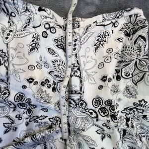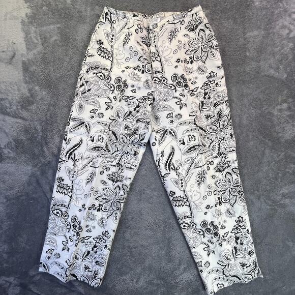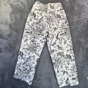 Silk Club Collection Pants Womens 8 White Black Linen Floral High Rise Pockets Lined