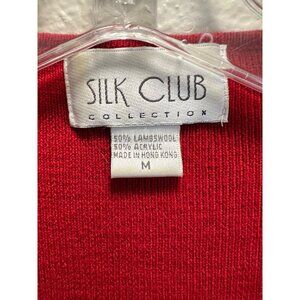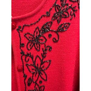 Silk Club Red Cardigan With Black Floral Beaded Embroidery Womens Medium Long