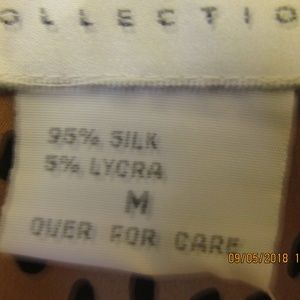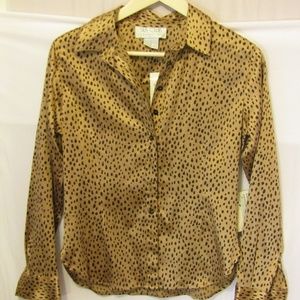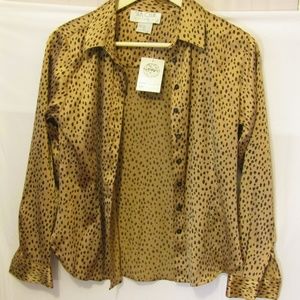 Pre-owned Silk Club Collection women's dress shirt, animal print, size medium. Measurements: Bust- 17 inches, Shoulders- 15 inches, Length- 23.5 inches. I have a smoke free, pet free home.