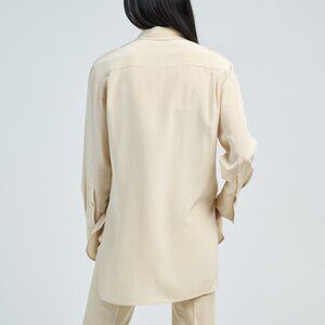 The Silk Crepe de Soie Bold Blouse is a relaxed fit blouse, crafted from a lightweight silk crepe. This fluid blouse has a soft sheen and a luxurious hand feel.