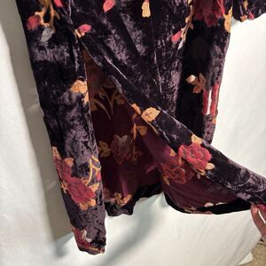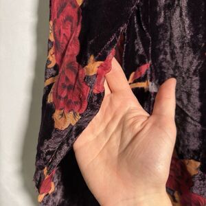 Silk Crushed Burnout Velvet Floral Dress Sheer Purple Side Slits Whimsigoth S* Handmade womens small fairy grunge lightweight breathable long sleeve knee length boho bohemian gypsy retro 90s Phoebe friends round neck high slits 100% silk soft all seasons wedding guest date formal travel Johnny Was vibe royalty medieval