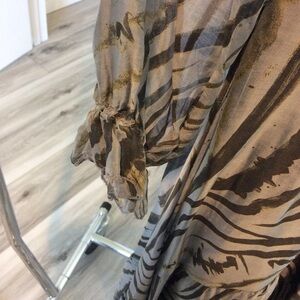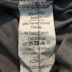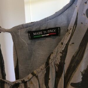 Dress made in Italy, unbranded, high-low, gray & green, silk, lined, no size tag that I see but fits a 6.