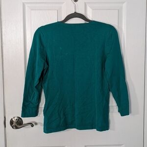 Silk Embellished Neckline Kelly Green 3/4 Sleeve Top from August Silk Size S