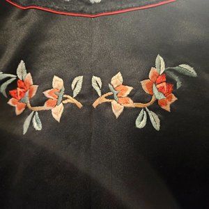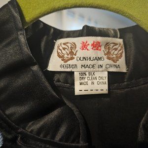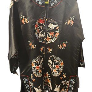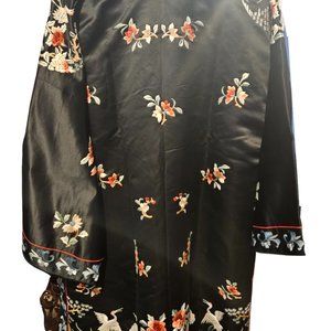 Silk Embroidered Black Floral Birds Jacket 3/4 Sleeve Side Slits DUNHUANG XL