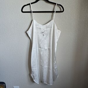 Silk Fashion White Slip Dress & Robe Set | Floral Embroidery Satin Large L