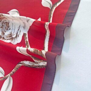 Silk Feeling Scarf Medium Square Satin Head 03 Red Flowers
