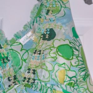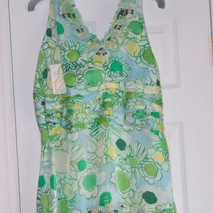 Gorgeous Cami top in a multi floral print it's a size 4 and I thought that was an XL. It's not, it has a side zip entry and beautiful embroidery. It has lightly padded cups so you don't have to wear a bra with it.