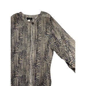 This elegant silk cardigan features a stunning animal print, perfect for adding a stylish touch to any outfit. The open front design and long sleeves make it versatile and comfortable for various occasions.