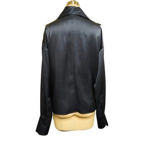 100% Charmeuse silk, loose fitting button up. Looking for a versatile blouse that can be dressed up or down? Check out our silk button up! Made from 100% pure silk, it's perfect for any occasion. Plus, the loose fit makes it super comfortable to wear. Whether you're headed to the office or a night out on the town, this blouse is a great choice.