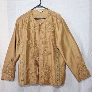 Silk Gold Embroidered Beaded Jacket, Boho, Coldwater Creek, Sz 18, NWOT