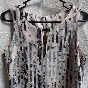 Silk Gray & Blush Abstract Tank Top W/Metal Link Design At Neck Size S (T-210)