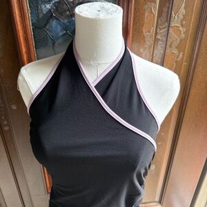 Black Halter Dress with Pink Accents.