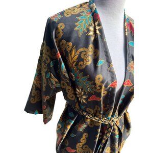 Silk Handmade Kimono Robe With Colorful Floral Pattern & Belt Womens One Size Fi