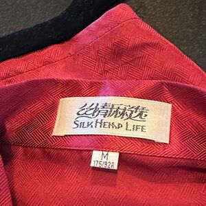Silk Hemp Life Red Silk Satin Button-Up Pajama Top Button Down Shirt