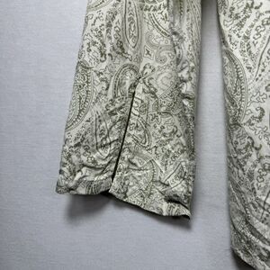Silk Icon 100% Silk Paisley Button-Up Shirt Womens Small Beige Green Long Sleeve