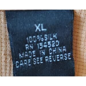 The size of the shirt is XL and it has a regular fit. It features a button closure and a point collar style. The shirt is perfect for casual occasions and can be paired with jeans or khakis. The brand is Silk Icon Collection and the material is silk with a woven fabric type. The shirt also has button accents and is suitable for men.