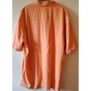 Great condition. Fast ship. This is a stylish and comfortable short sleeve button shirt from the Silk Icon Collection. Made from 100% silk, it is perfect for the fall season. The shirt comes in a vibrant orange color and has a solid pattern.