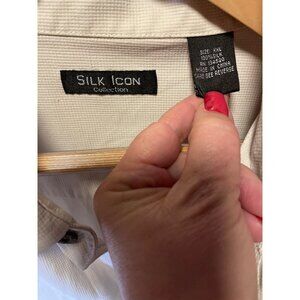 Silk Icon Mens Cream Button Down Short Sleeved Silk Shirt Sz 2XL