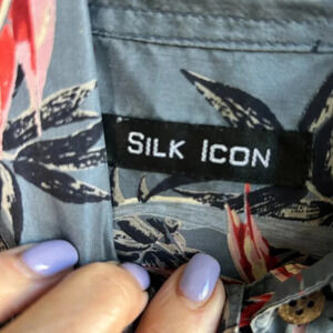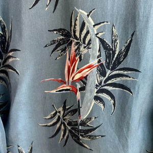 Silk Icon Men's Slate Blue Hawaiian Bird of Paradise Short Sleeve Shirt Size XL