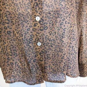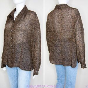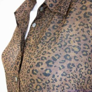 Silk Icon Collection 100% silk leopard animal print button down shirt, size L