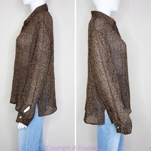 Silk Icon Collection 100% silk leopard animal print button down long sleeve shirt, size L