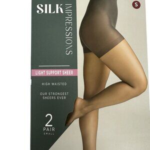 Silk Impressions Light Support 20 Denier High Waisted Pantyhose Black S 2-Pack