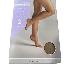 Silk Impressions Pantyhose Size XL Ultra Fine Sheer Rich Tan 15 Denier 2Pair NEW
