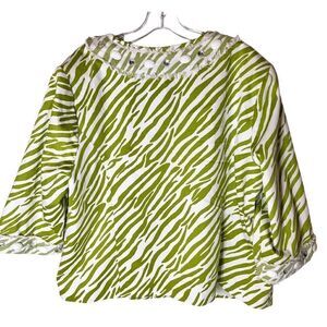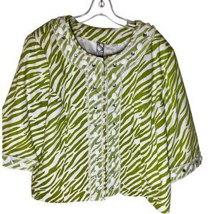 Silk Land Jacket Long Sleeve Boho Lime/White Print Mesh & Jewel Embellished 2XL