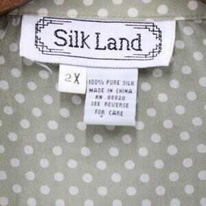 Silk Land Shirt Womens 2X Beige Polka Dot Button Down Short Sleeve Collared