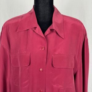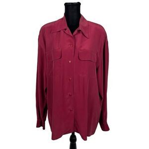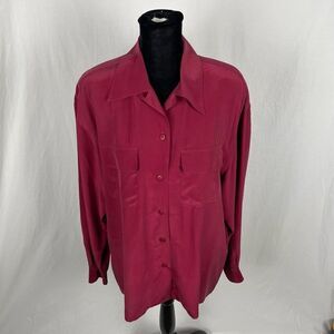 Silk Land Vintage 100% Silk Wine Red Safari Button Down Shirt - Women’s 10
