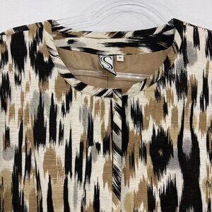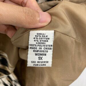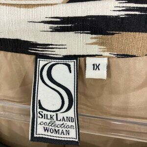 Silk Land size 1X Brown Black Abstract Silk 3/4 Sleeve Button Long Jacket