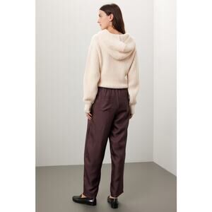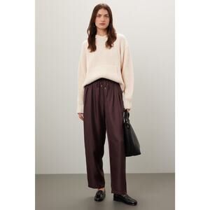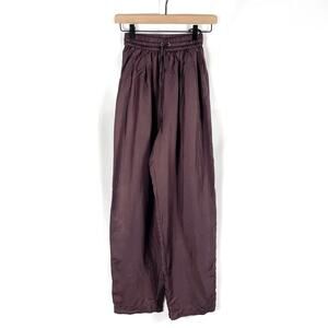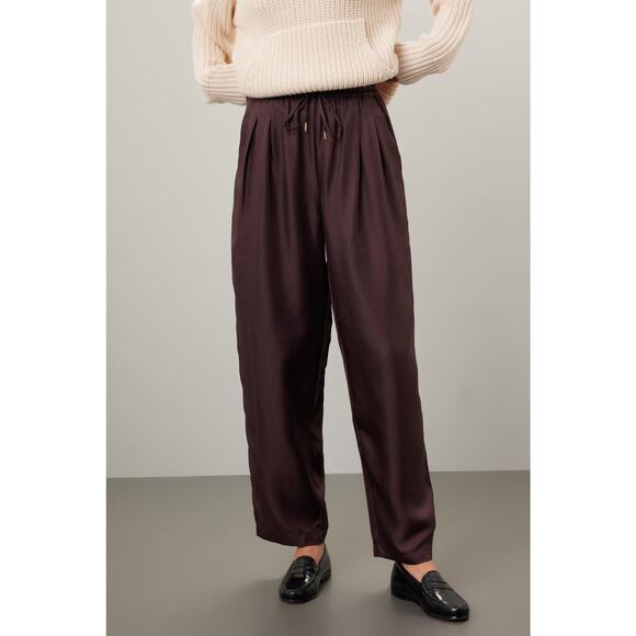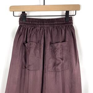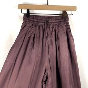 Silk Laundry Slouch Pull On Pants Brown Silk Elastic Waist Pleated Ankle Sz XS