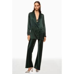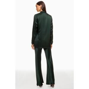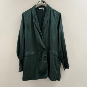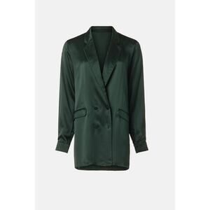 Green (100% Silk Satin). Jacket. Long Sleeve. Front button closure. Shoulder to hemline length: 30".shoulder to shoulder 16”. Pit to pit 24”