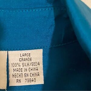 Silk Lore Button Up Shirt Size L 100% Silk Long Sleeve Embroidered Blouse