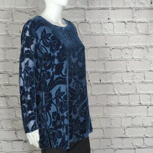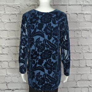 Silk Lore by Beth Terrell Navy Blue Velour/Silk Tunic, Women's Small