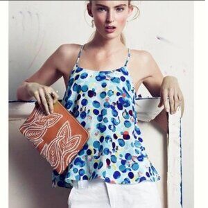 Silk Maeve Anthropologie Zabella Scatter Dot Blue Cream Ruffles Racerback Top 10