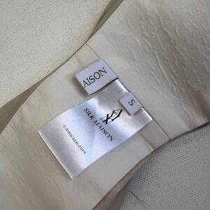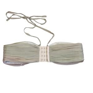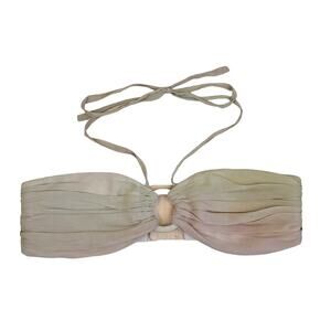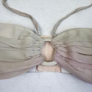 Ombre Mulberry silk, hollow center ring, strap halterneck, ruched bust, hook-&-eye closure, size S.