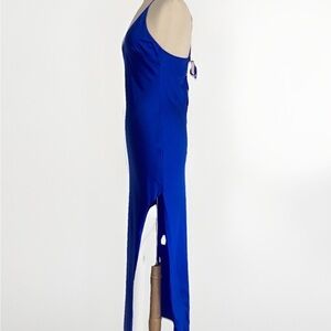 Silk Maison Sapphire Electric Blue Side Slit Spaghetti strap Silk Maxi Dress M