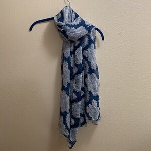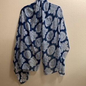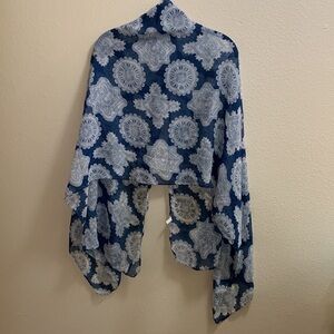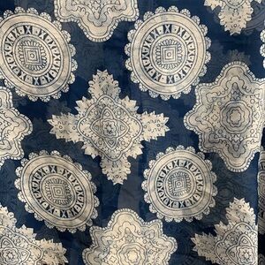 Silk Medallion Scarf Shawl Patriotic 4th of July Viscose Blue and White
