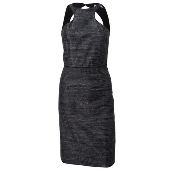 A handwoven silk tweed dress featuring a halter style neckline, back cut out, tonal piping, and a hidden back zipper.