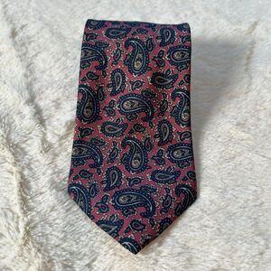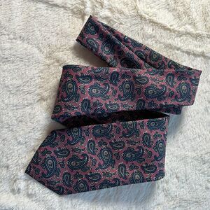 Silk Neck Tie Pink + Blue Paisley Design Hand Made In Italy 3.25 x 54"