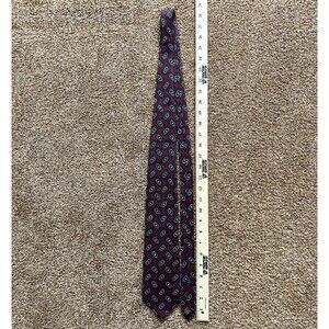 Mens 100% Italian silk neck tie. Red with abstract design. Hand made. No flaws found 3.5 wide 58 length