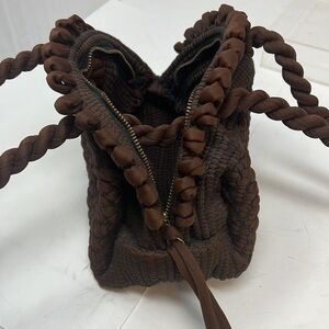 This is a beautiful handmade Silk Nylon Knit Semi Structured Zip Around Small Handbag. Purchased while traveling in the UK. Beautiful braided and weaved silk and nylon. Unlined interior. 8” x 6” x 4.5” with 5” straps. No odors. No tears. No stains.