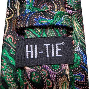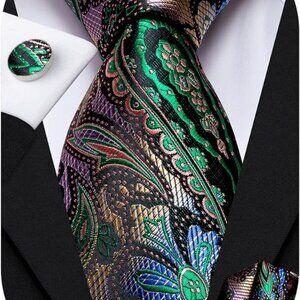 Silk Paisley Necktie and Pocket Square Cufflinks Set Green