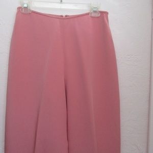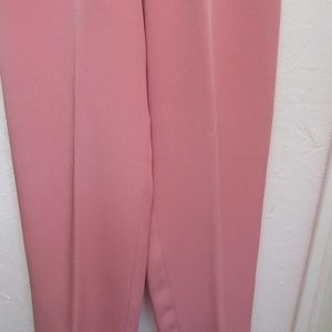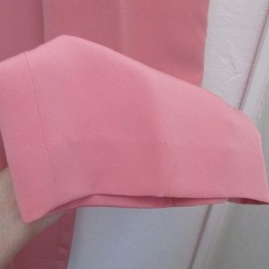 These pants are elegant with it's gorgeous pink/salmon color, made of 100% silk with fine workmanship. The material has a beautiful sheen to it and they are very soft. Zipper in the back and fastens with a small eyehook. They are lined inside in the same color and they are absolutely gorgeous on! They are NWOT and have never been worn.