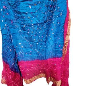 Silk Pink and Blue Scarf Silk Indian Dupatta Scarf