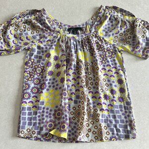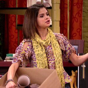 Rare Silk Purple Pattern Blouse with Shoulder Cutouts as seen Alex Russo in Wizards of Waverly Place season 3 episode 6 (2009). Same style, brand and color. 100% silk. Probably weren't so many of these made unlike with her Free People looks. The blouse was also seen on Robin Scherbatsky in How I Met Your Mother season 5 episode 5.