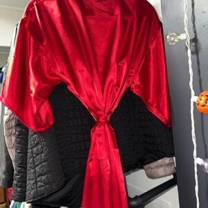 Super comfy silk red robe. perfect for lounging or to just throw overtop!